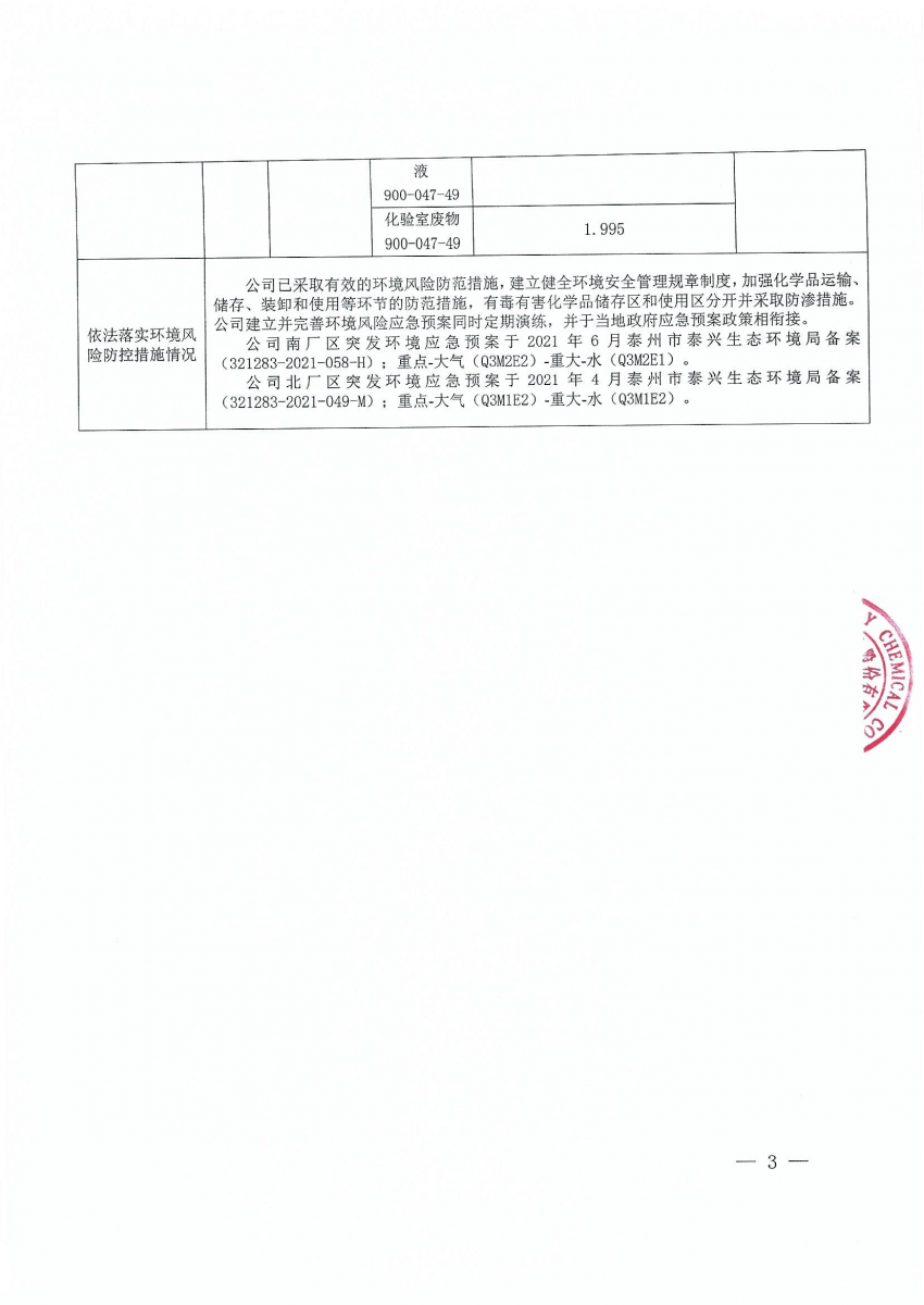 泰州百力化学股份有限公司